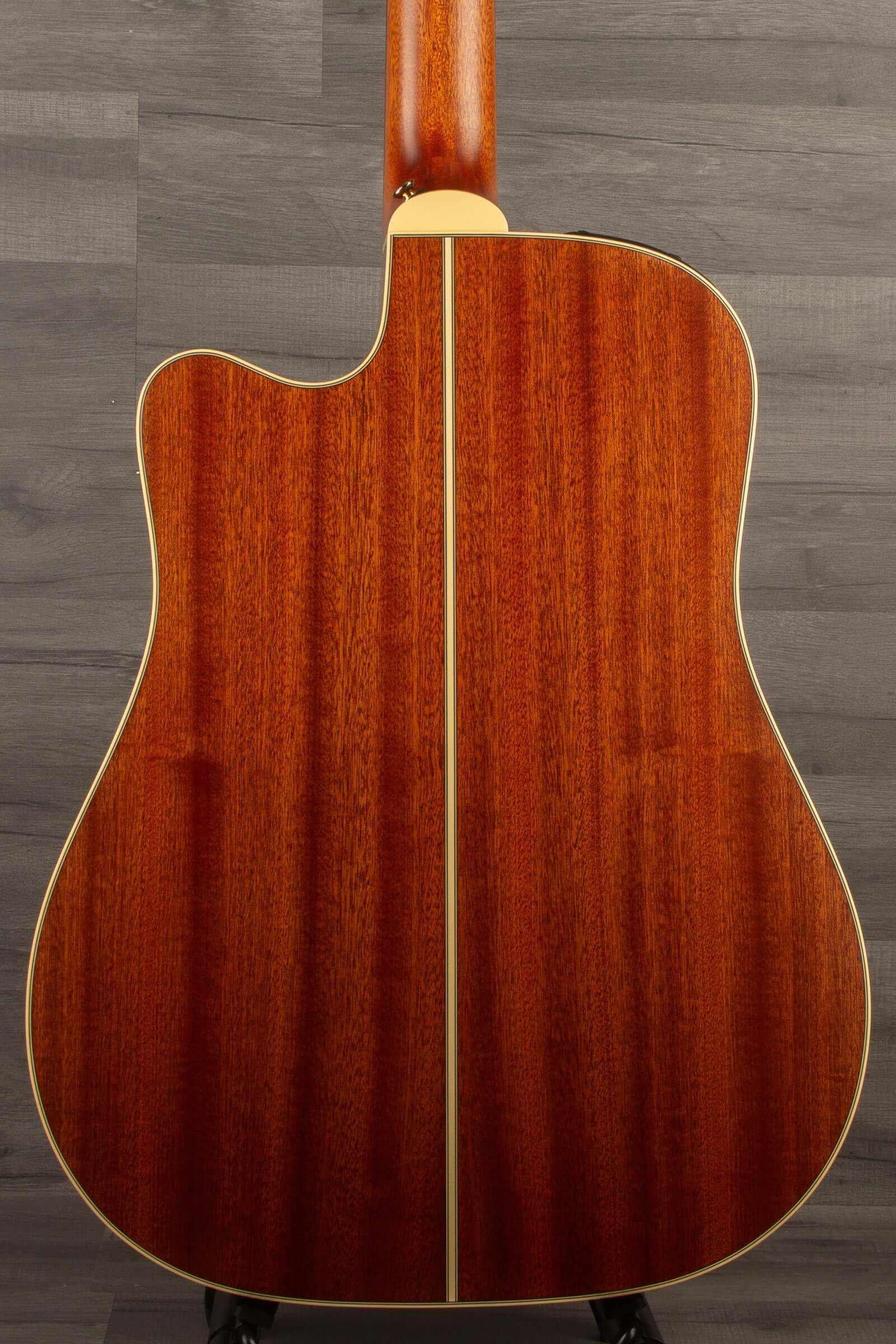 Other premium features include a solid sapele back, mahogany neck, rosewood fingerboard with wood “dot-in-dot” inlays, gold tuners with amber buttons, natural satin finish and the highly acclaimed CT4B II preamp system with three-band EQ, volume control and built-in tuner.