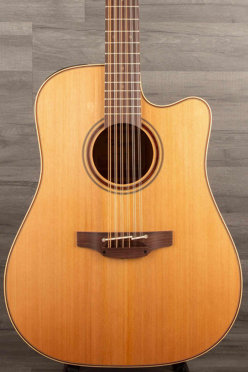 Takamine’s top-line Pro Series P3DC-12 presents rich dreadnought 12-string tone with peerless Takamine style and performance. With resonant tonewoods, elegant appointments, smooth playability and state-of-the-art electronics, it’s an exquisite acoustic experience onstage and off. The solid cedar top features X bracing and ivory binding, with dark purfling and a gorgeous concentric-ring rosette with wood marquetry. The unique Takamine split-saddle bone bridge provides faultless intonation and excellent acoustic coupling to the top.