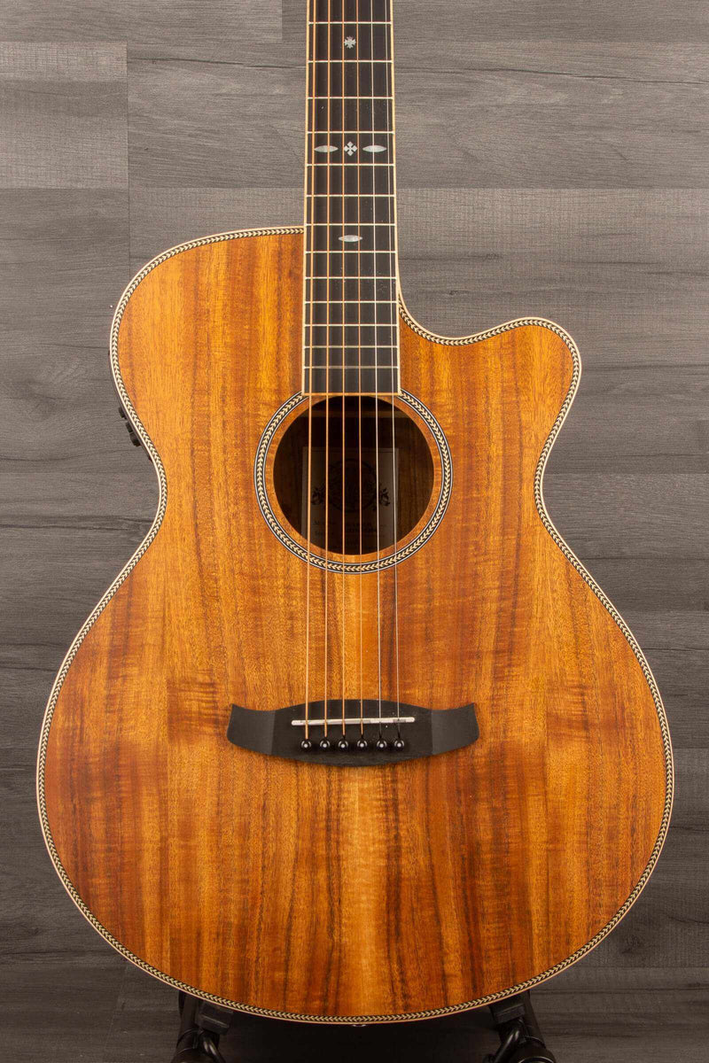 Koa wood, known for its exceptional sound qualities and striking appearance, is used to craft the guitar's back and sides. This luxurious tonewood delivers a rich, resonant sound that adds depth to the overall tone while producing beautiful harmonic overtones.