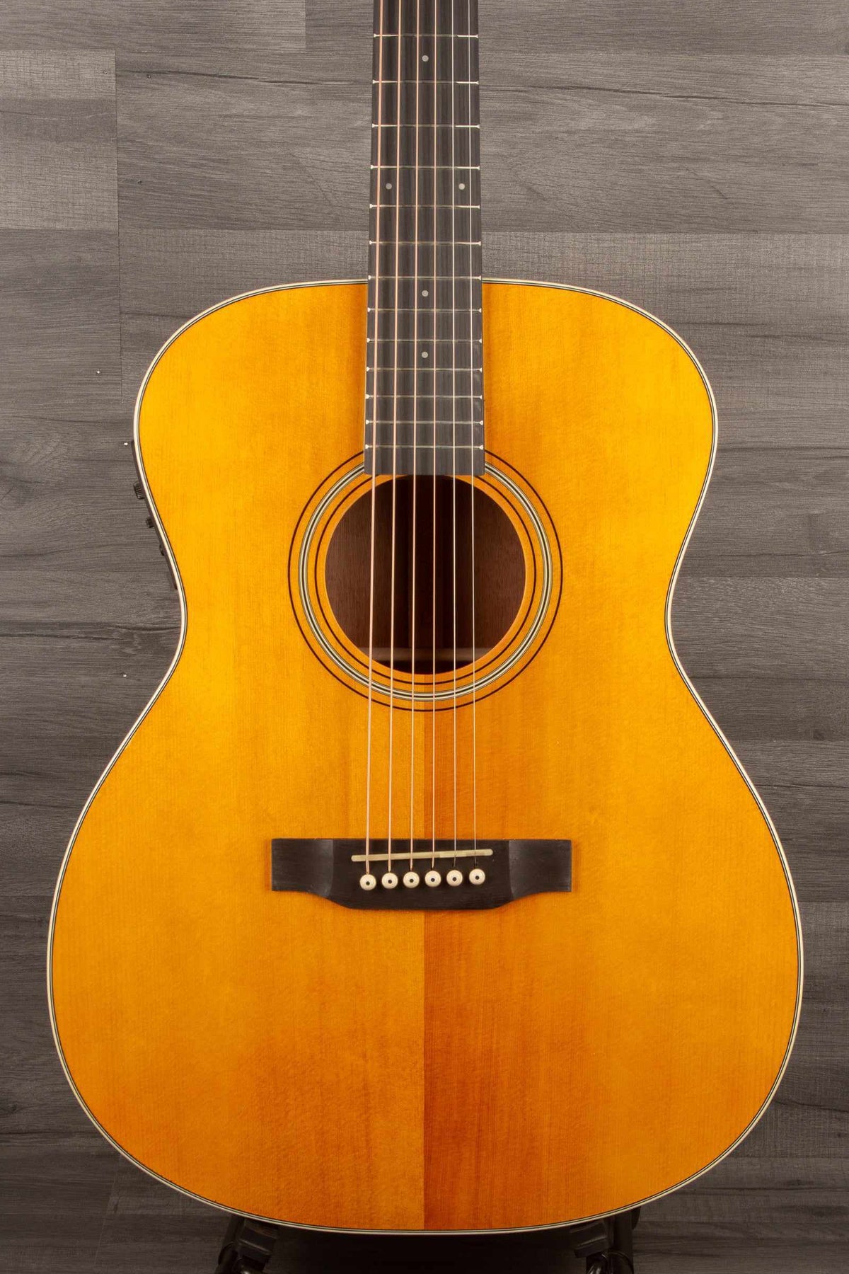 Part of the Sundance Historic guitar series, the Tanglewood TW40 O AN E features a solid spruce top with mahogany back and sides. This guitar shouts retro, with an orchestra folk shaped body and discrete control knobs. Richly resonant with a bright tone and deep bass notes, the TW40 comes equipment with the popular Fishman Sonitone pickup preamp system, with on-board electronic tuner.
