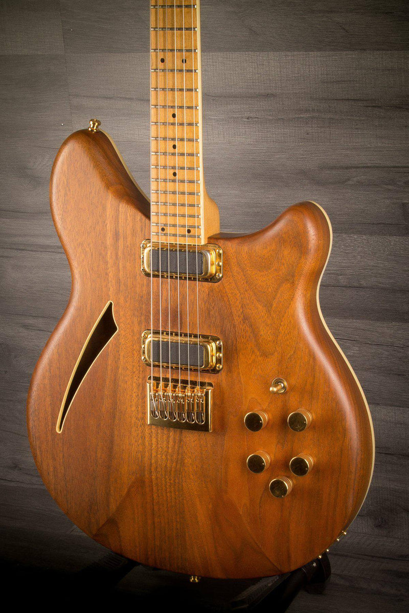 The neck is made of maple with an embedded walnut strip, the body of walnut wood, everything oiled and not lacquered.