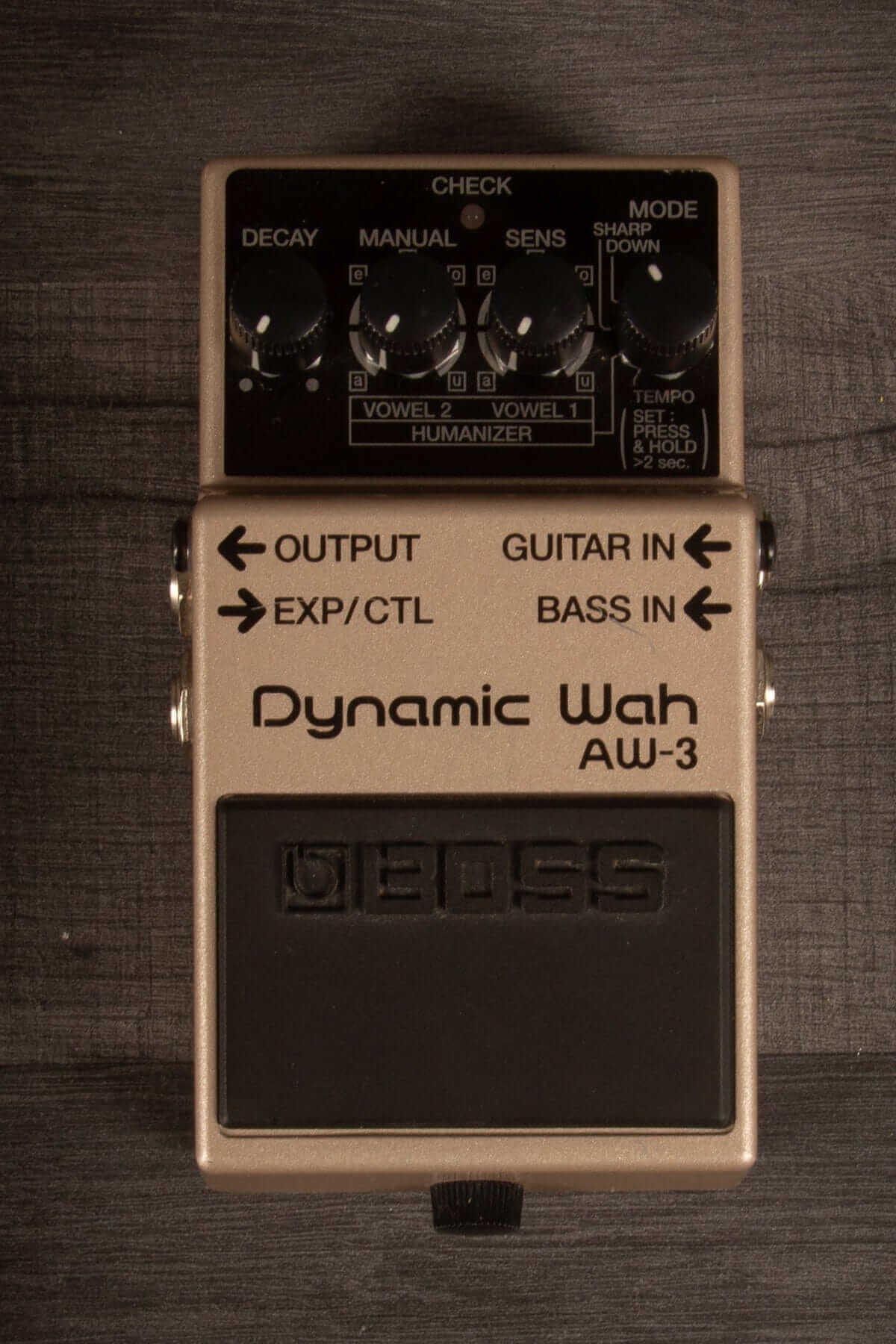 The BOSS AW-3 Dynamic Wah pedal gives guitarists a wide range of classic auto-wah and dynamic wah effects, plus a new "Humanizer" effect which can simulate human vowel sounds. A Bass input provides a variety of funky wah sounds for bass guitar.