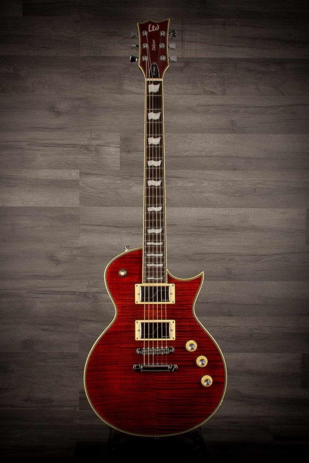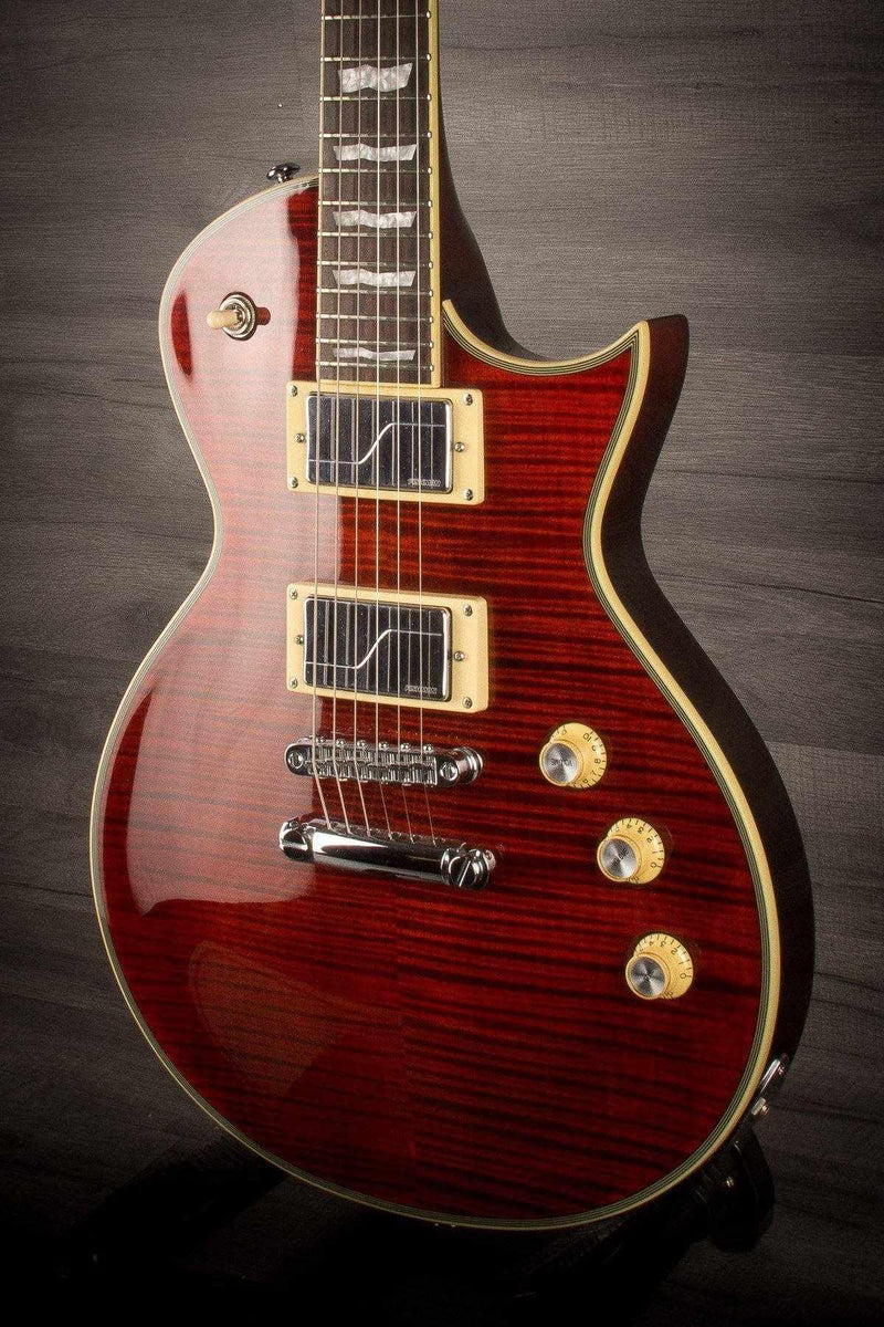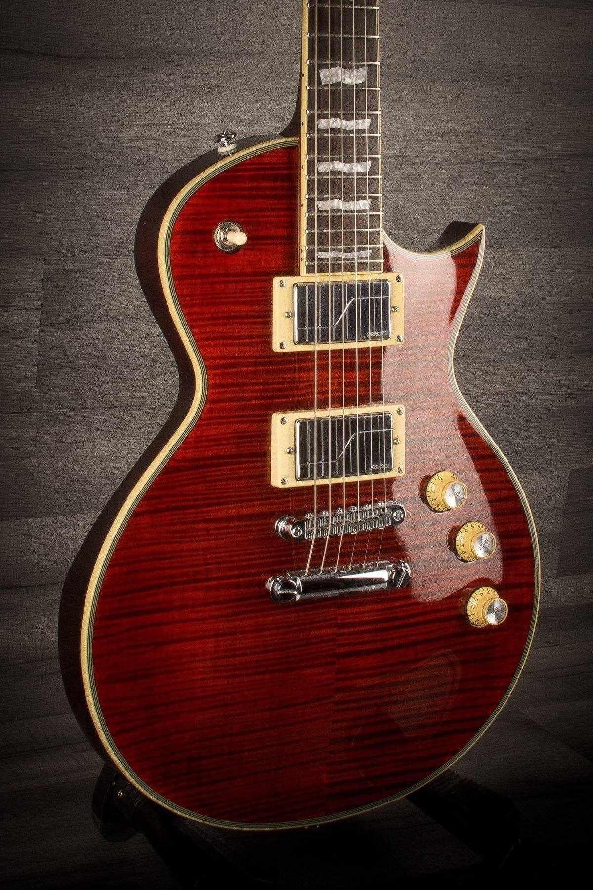 Guitars in the LTD 1000 Series are designed to offer the tone, feel, looks and quality that working professional musicians need in an instrument. With the EC-1000FM Fluence®, you get the great look and feel of the single-cutaway design based on the ESP Eclipse along with Fishman’s innovative Fishman Modern Humbucker pickup set for extraordinary versatility in tones. This model is available in Tiger Eye finish over an outstanding flamed maple top with binding on the body, neck, and matching headstock. It features a Macassar ebony fingerboard with 24 extra-jumbo frets, LTD locking tuners and a Tonepros locking TOM bridge and tailpiece. It also offers set-thru construction with a mahogany body and three-piece mahogany neck.