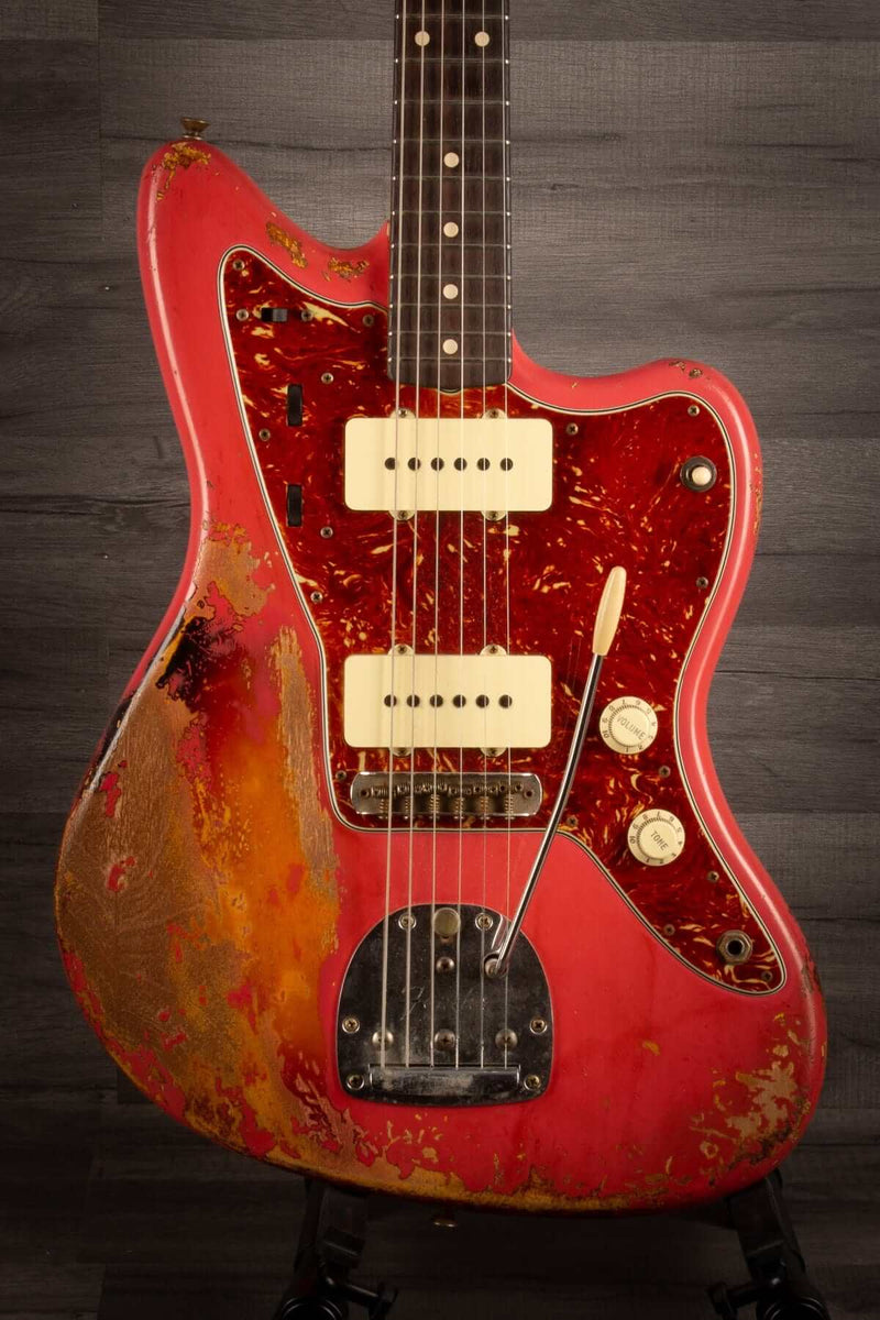 USED - Fender Carlos Lopez Masterbuilt '62 Jazzmaster (2021) - Faded Fiesta red over sunburst Heavy relic.
