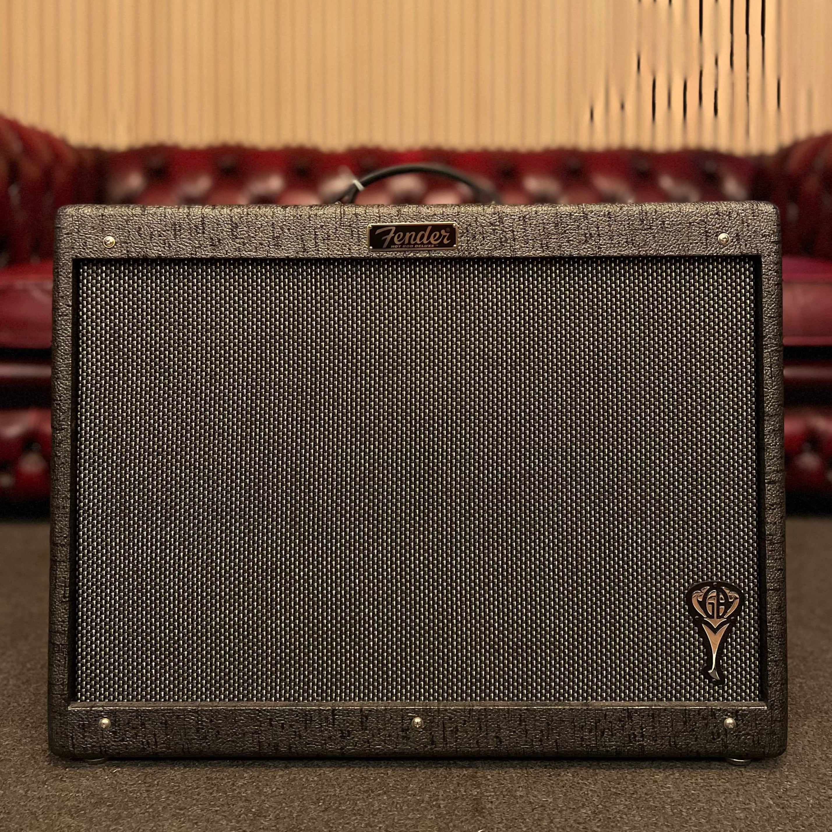 Guitarists of all kinds play through Fender Hot Rod Deluxe amplifiers. Rockers, pop stars, cowboys and more all agree that they deliver unmistakable Fender tone perfect amps for crafting your own sound, and extremely responsive to your favourite stomp-box effects. The GB Hot Rod Deluxe is a 40-watt 1x12 combo especially fine-tuned for world-famous jazz guitar virtuoso and pop artist George Benson. It has the full bottom end characteristic of 6L6 tubes, and a versatile all-tube preamp including a 12AT7 up front for cleaner tone; especially with humbucking pickups. A 100-watt Jensen C12K speaker handles the immediacy of Bensons singing soloing style with clarity and range, and the solid-pine cabinet increases tonal resonance while reducing weight. Standard features include clean and drive/more-drive channels, resounding Fender spring reverb, effects loop and more. Personalized exterior touches specified by Benson himself include gray-black vinyl covering, silver-strand grille cloth and GB logo badge. Road-worthy deluxe padded cover and two-button footswitch included. Separate matching 1x12 extension enclosure (part number 223-1400-000) adds output, fullness and stage coverage.
