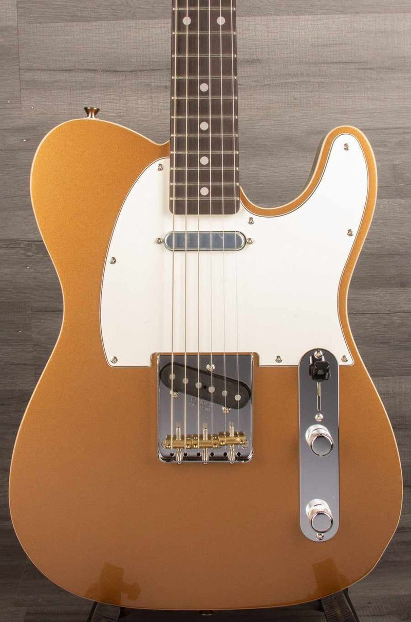 The ’60s Custom Telecaster has a resonant basswood body and is double bound for a touch of elegance. Its dual single-coil pickups are voiced to deliver classic Tele tone. A 4-way switch allows players to quickly select each pickup individually or both pickups in either series or parallel wiring. A push-pull pot on the tone control allows players to flip the pickups in and out of phase in switch positions 2 and 4. The Soft "V"-shaped maple neck has a silky-smooth satin finish and plays effortlessly thanks to the 9.5" radius rosewood fingerboard and medium jumbo frets.