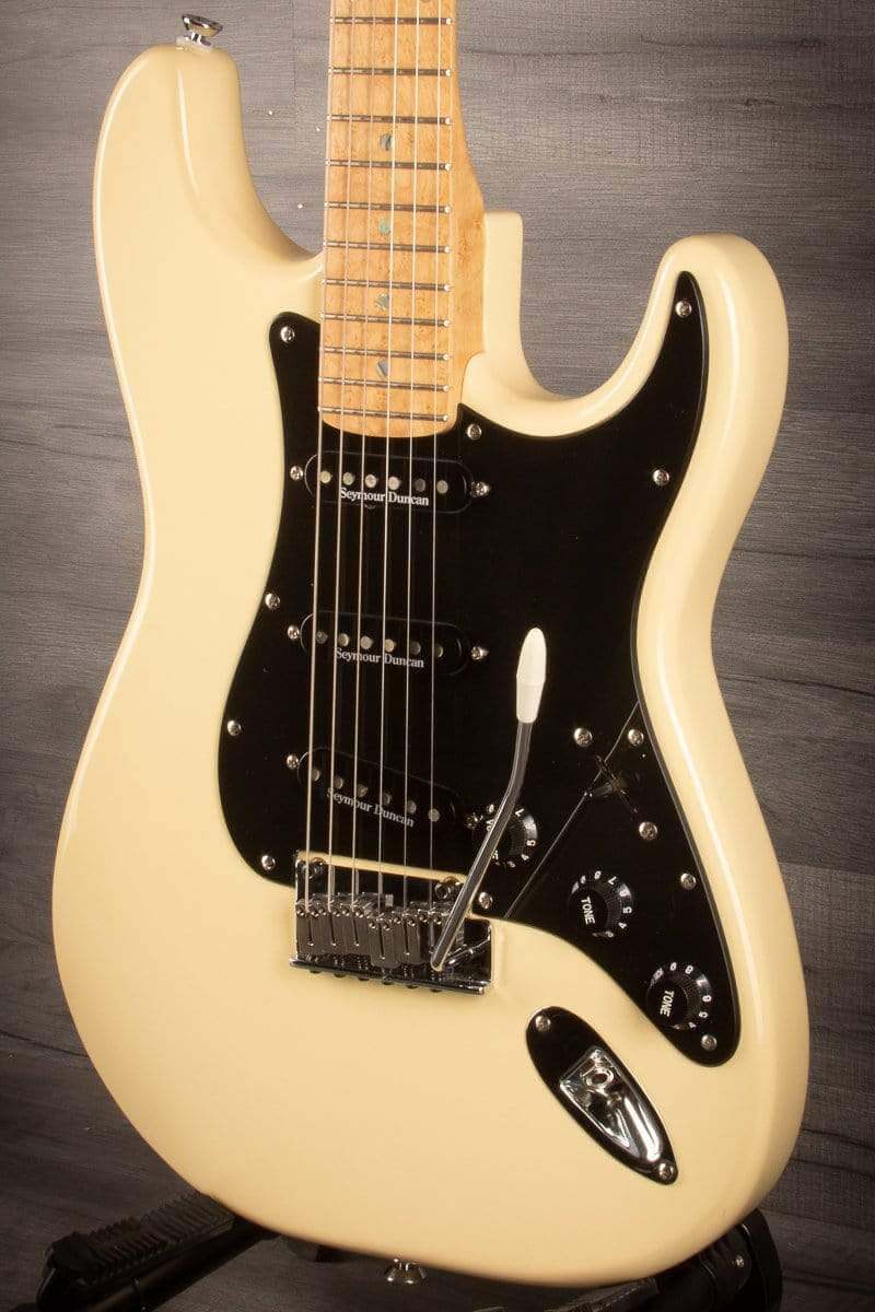 This Fender Lite Ash Stratocaster from the Korean Samick factory is in excellent condition. Its production is estimated to have occurred between 1988 and 1996, with the possibility of extending to the early 2000s. It features Seymour Duncan pickups, a birdseye maple figured V neck, and a generic hard case. A truly distinguished example.