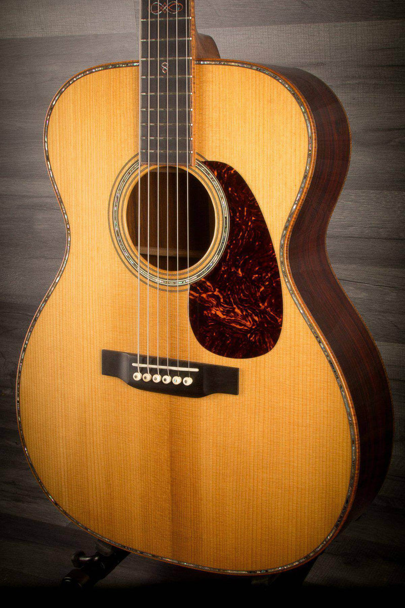 The world-renowned Martin Custom Shop offers this stunning 24.9” scale CS-00041-15 Edition for 2015. The back and sides of brilliant orange and black grained solid cocobolo are combined with an Adirondack spruce top with Martin’s new Vintage Tone System (VTS), delicately scalloped with high performance ¼” top bracing for an unparalleled complex and vibrant tone. Premium inlay techniques are employed for the cocobolo headplate and back. The body is bound with Hawaiian flamed koa wood trim and enhanced with Style 41 abalone inlay around the top and rosette. Specially designed concave ribbon inlays in select abalone, mother-of-pearl and genuine mahogany grace the black ebony fingerboard. Limited to 75.