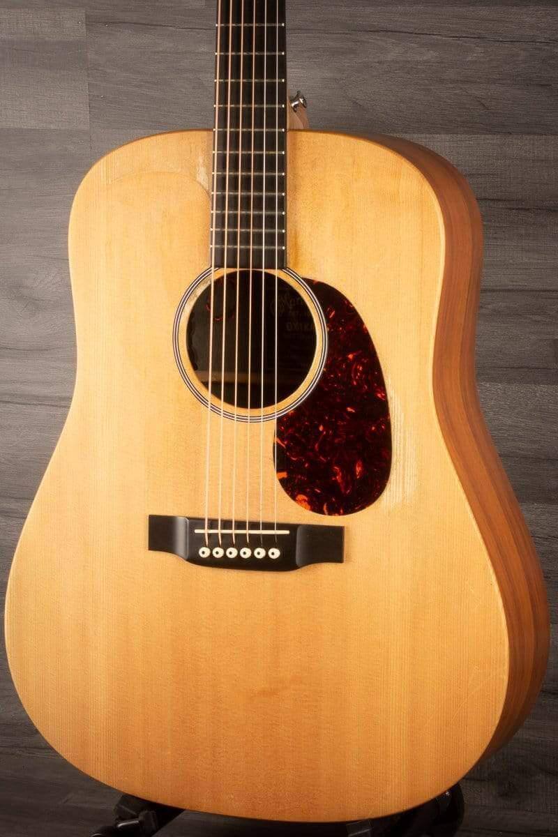 The Martin DX1KAE Acoustic-Electric Guitar features a D-14 platform and a Dreadnought body design with attractive looks and playability. Pairing the solid Sitka spruce top with Hawaiian koa-pattern high pressure laminate (HPL) back and sides, the DX1KAE Koa features Fishman electronics and a non-cutaway style body. This guitar is truly a "plug and play" instrument.