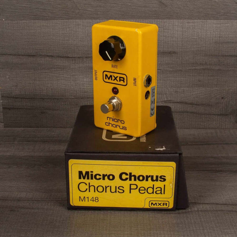 With its simple operation and stellar analog tone-the MXR Micro Chorus joins the ranks of MXR Classics such as the Phase 90, Dyna Comp Compressor, and the Micro Amp. This '80s reissue delivers a stunning range of rich chorus textures, from sparkly watery shimmers to intense rotating speaker simulation with a twist of the Rate control. The Micro Chorus is designed with old-school bucket brigade technology for warm analog tone and features true bypass for pure guitar tone when the pedal is off. Its road-worthy hardware and components are housed in a space saving Phase 90 sized box.