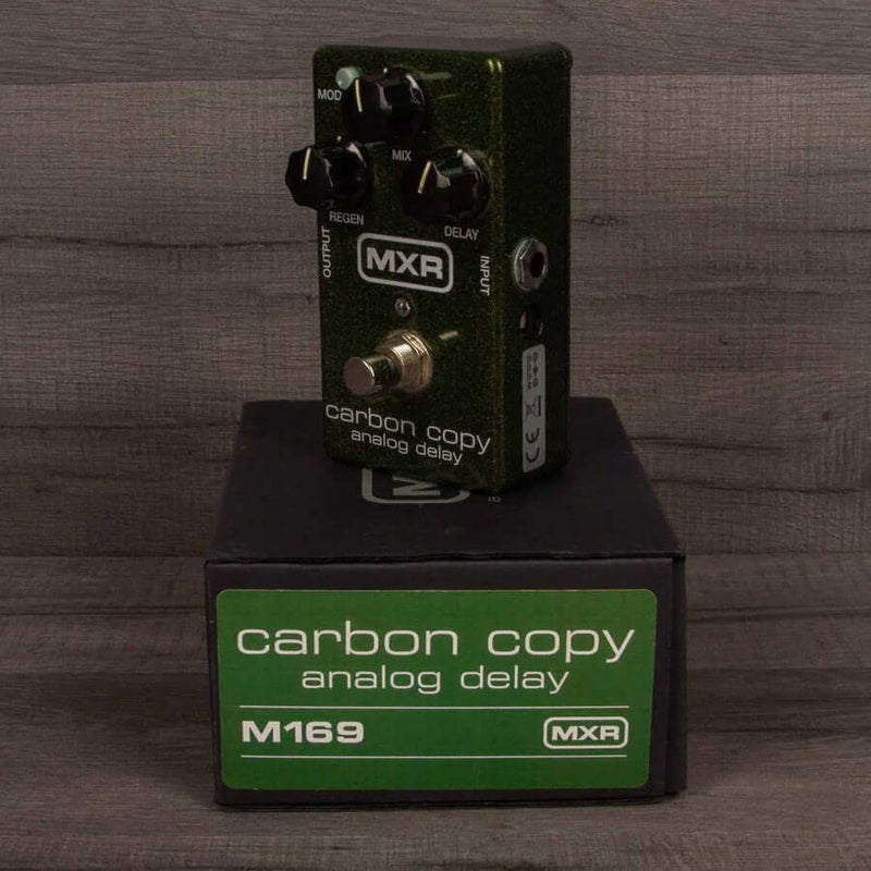 Go from crisp bathroom slap echoes to epic, Gilmouresque delays with the MXR Carbon Copy Analog Delay. Featuring 600ms of delay time with optional modulation, and a three-knob layout that controls Delay, Mix, and Regen. In addition, there are two internal trim pots that offer user-adjustable width and rate control of the modulation for even more tonal options. All done by a completely analog audio path for authentic rich, warm analog delay-made possible only by old-school analog bucket brigade technology. True bypass.