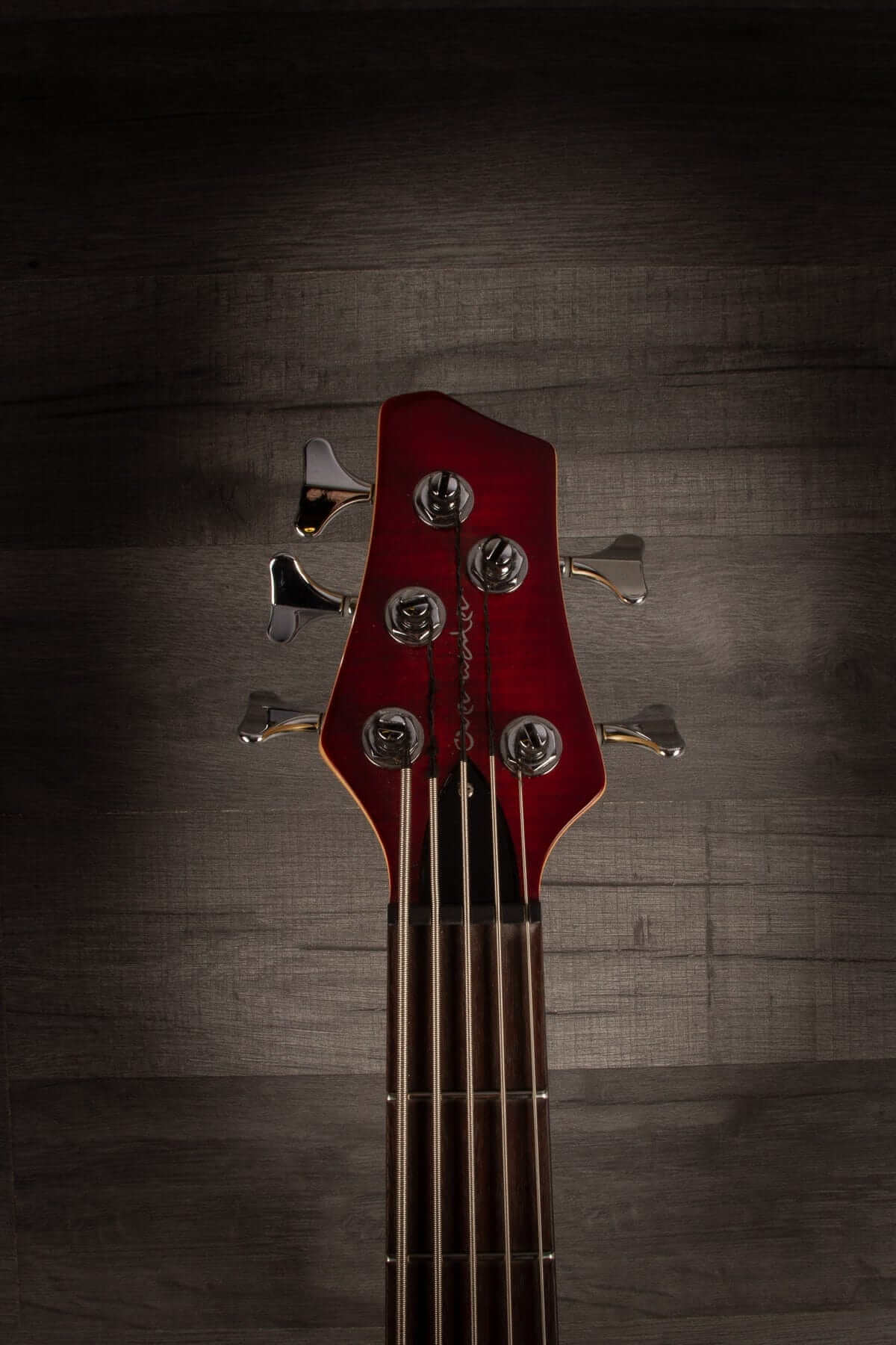- ELECTRONICS: 2x Overwater soapbar pickups. 3-band active EQ. Controls for vol (pull bright) / pan / treble / bass