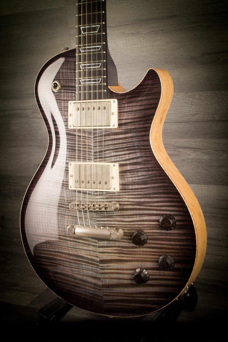 This stunning Singlecut Macon Carve Top model finished in Blue Burst. The guitar is resonant and has a comfortable and light weight, which is noticeably lighter than a number of other singlecut electric guitars. We love the colour on this one as well - The blue burst accentuates the flame top really nicely and the gloss finish looks superb. The neck is instantly comfortable with its 'Fat C' profile and the 12'' radius and large Jescar frets makes lead playing smooth and easy.