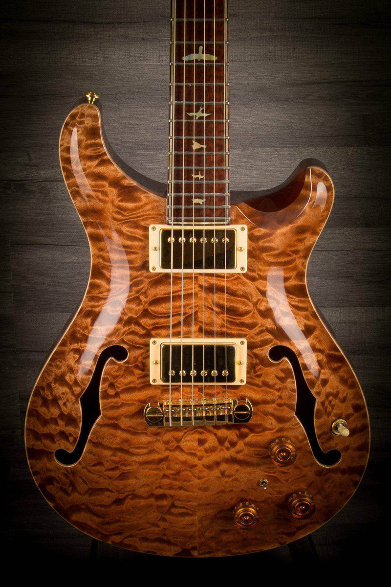 This Copperhead Hollowbody I model Private stock guitar custom designed and handmade by Joseph Knaggs, Dave Hazel, Chris Bavaria, Paul Miles and Paul Reed Smith. The woods which include a west coast quilted maple top, were carefully picked from Paul's private stock for sound and remarkable figure. This guitar features the PRS Prizeo system which when used in conjunction with the Archtop pickups, offers a wide array of tonal variations. Other features such as snakewood fretboard and headstockveneer, add to this guitars special appeal