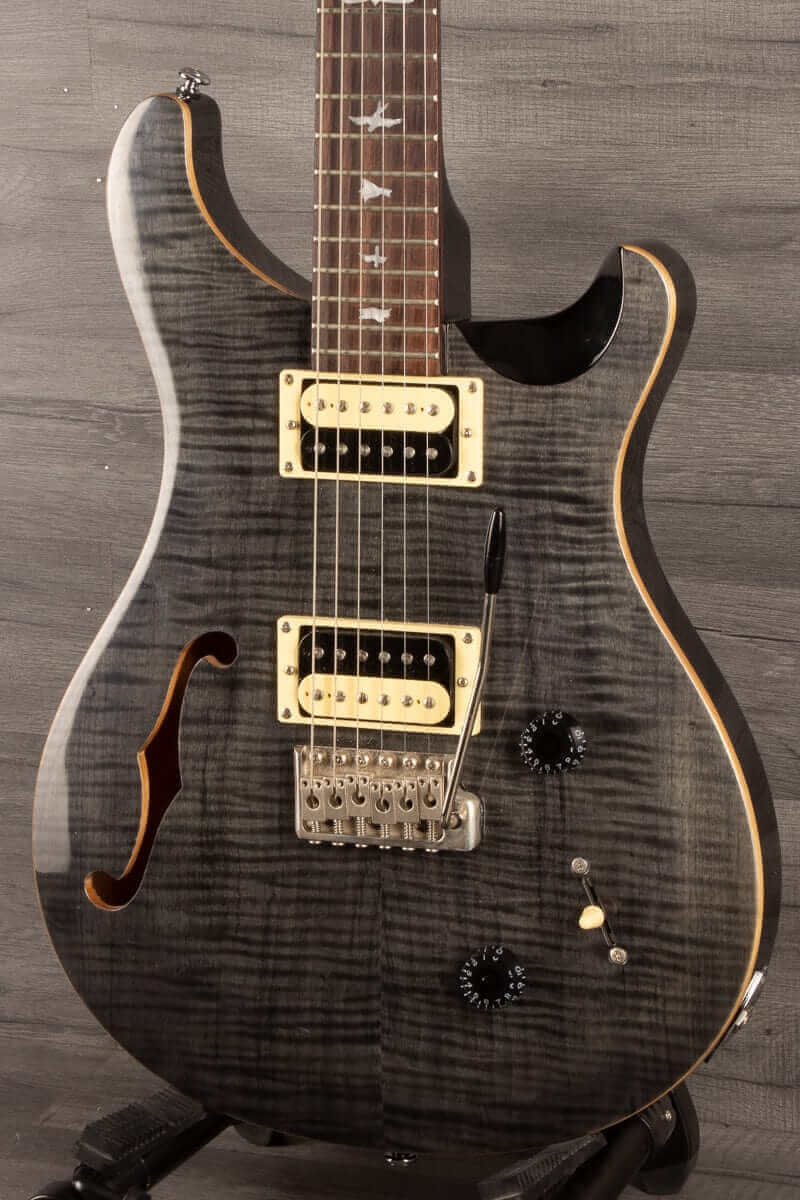 This pre-owned PRS SE Custom 22 Semi Hollow Grey Black - 2018 model is in excellent condition and comes with a gig bag. Its unique semi-hollow construction, combined with its dual humbucker pickups, produces a wide range of tones that are full of vivid detail.