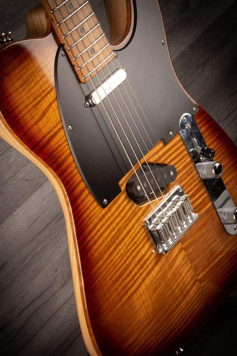 It features a Caramel Flame Maple Top on Swamp Ash Body, Caramel Maple neck and fretboard, even-taper +.030 Neck profile, and TV1/TV3 Pickups.