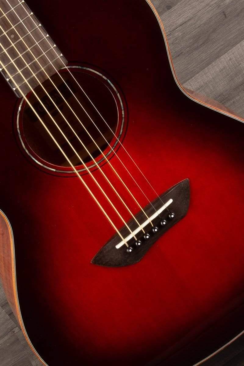 The Yamaha CSF3M, compact folk guitar, features all-solid mahogany back and sides with sitka spruce top with newly designed scalloped bracing. Piezo pickup ensures solid plugged-in performance.